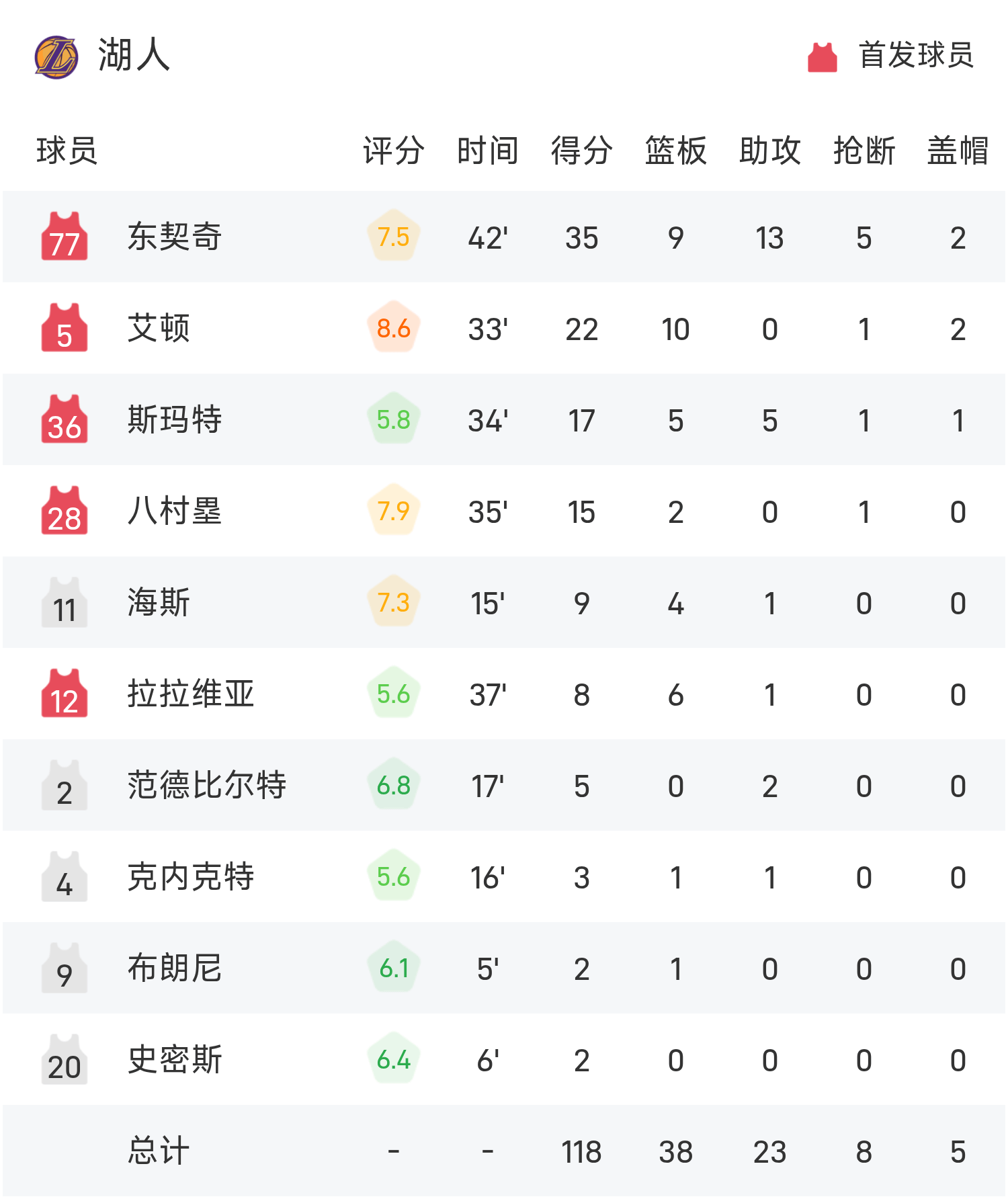 ดอนซิกทำคะแนนสูงสุดในเกม 35 แต้ม 9 รีบาวน์และ 13 แอสซิสต์ นำทีมเลเกอร์สคว้าชัยชนะ