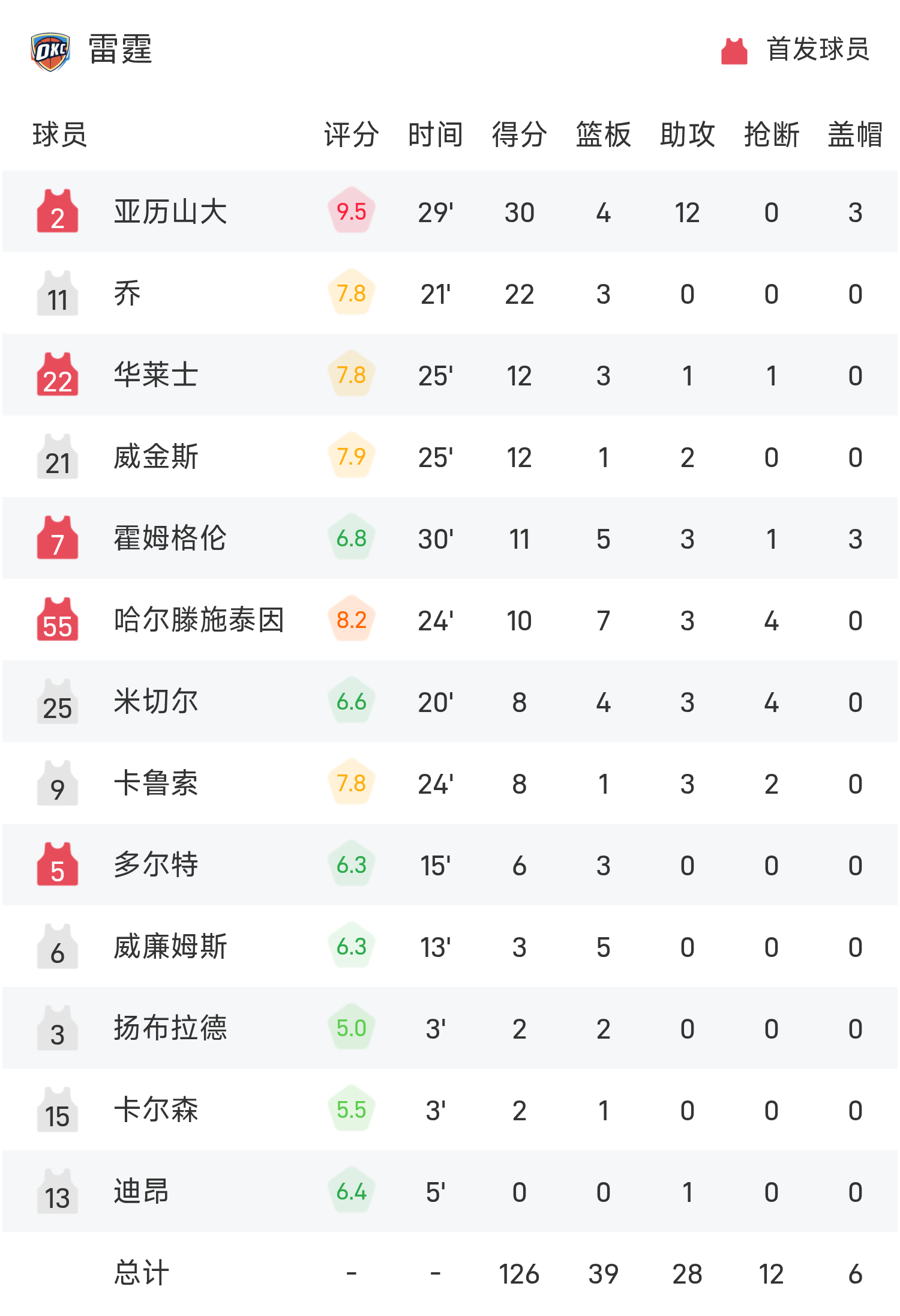 NBA Report: อเล็กซานเดอร์มี 30 แต้ม 12 แอสซิสต์ ธันเดอร์เอาชนะคลิปเปอร์ส 126-107