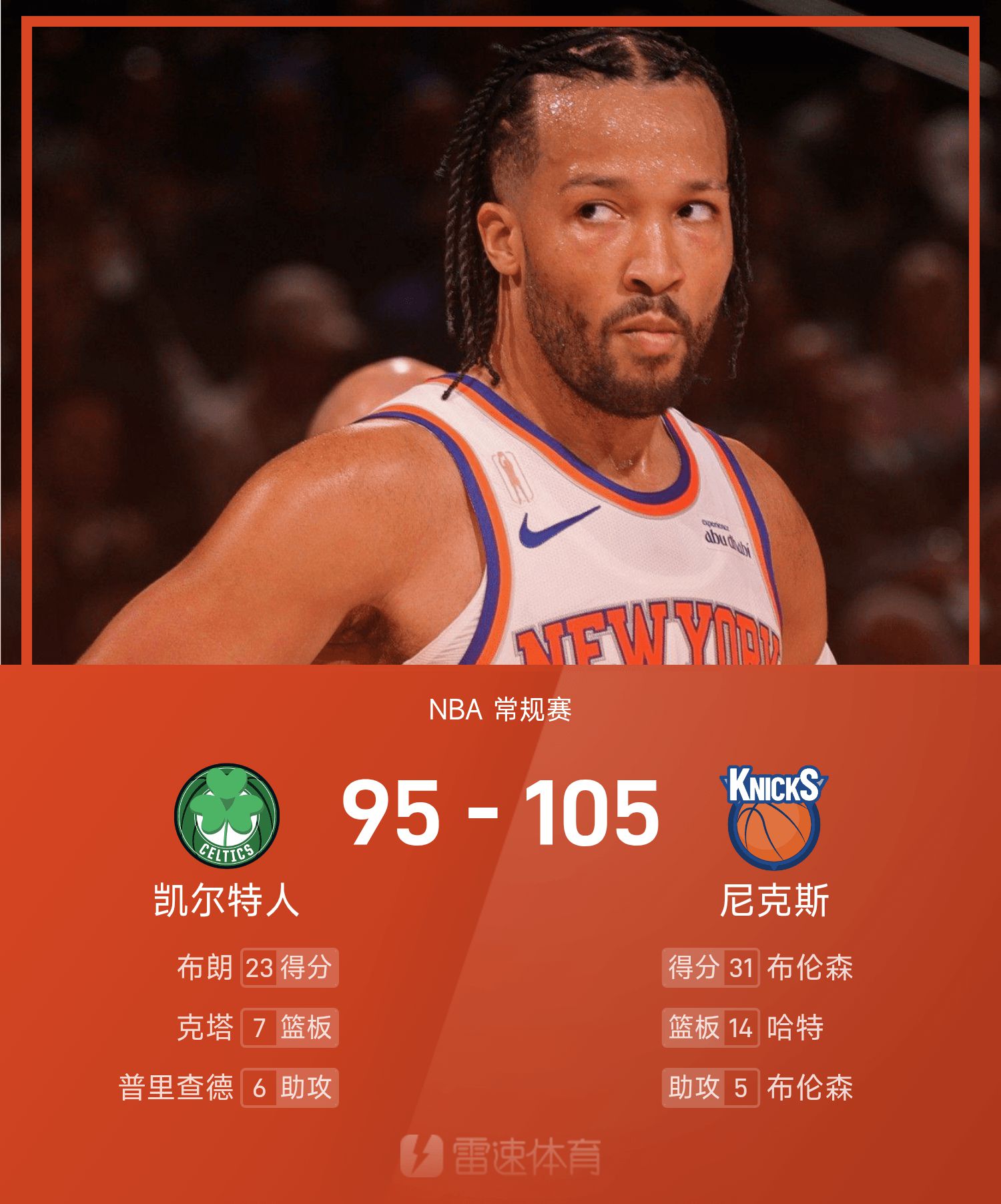 6686 กีฬา 25 ตุลาคม ในฤดูกาลปกติของ NBA 25/26 ทีมนิกส์เผชิญหน้ากับเซลติกส์ จบเกม นิกส์ เอาชนะ เซลติกส์ 105-95 บรันสันทำคะแนนสูงสุดในเกม 31 แต้ม 3 รีบาวน์และ 5 แอสซิสต์ นำทีมนิกส์คว้าชัยชนะ
