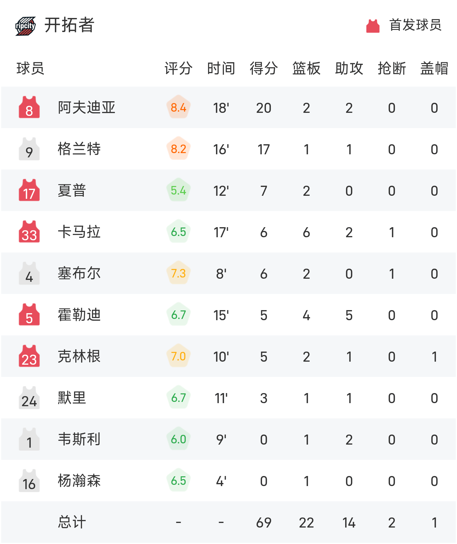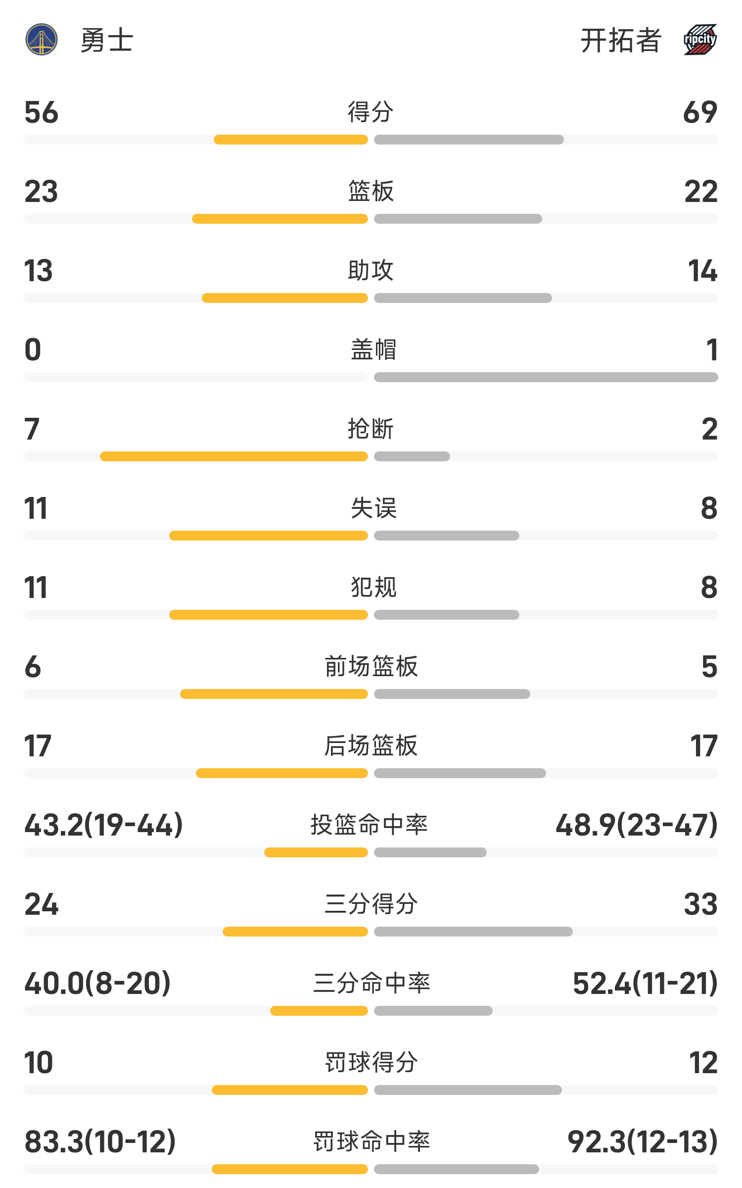 ช่วงพักครึ่ง NBA: ยาง แฮนเซ่น ยิง 0 จาก 1 นัด มี 1 รีบาวด์ และ 1 ผิดพลาด เคอร์รี่ ทำ 24 แต้ม โดยมี 3 พอยน์เตอร์ 5 ครั้ง เทรลเบลเซอร์ส 69-56 วอร์ริเออร์ส