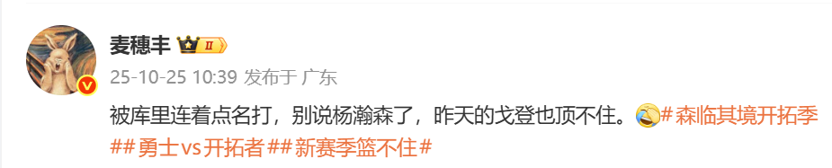 สื่อมวลชน @Mai Suifeng เขียนว่า: "ไม่ต้องพูดถึง Yang Hansen เลย กอร์ดอนทนไม่ไหวแล้วเมื่อวานนี้"