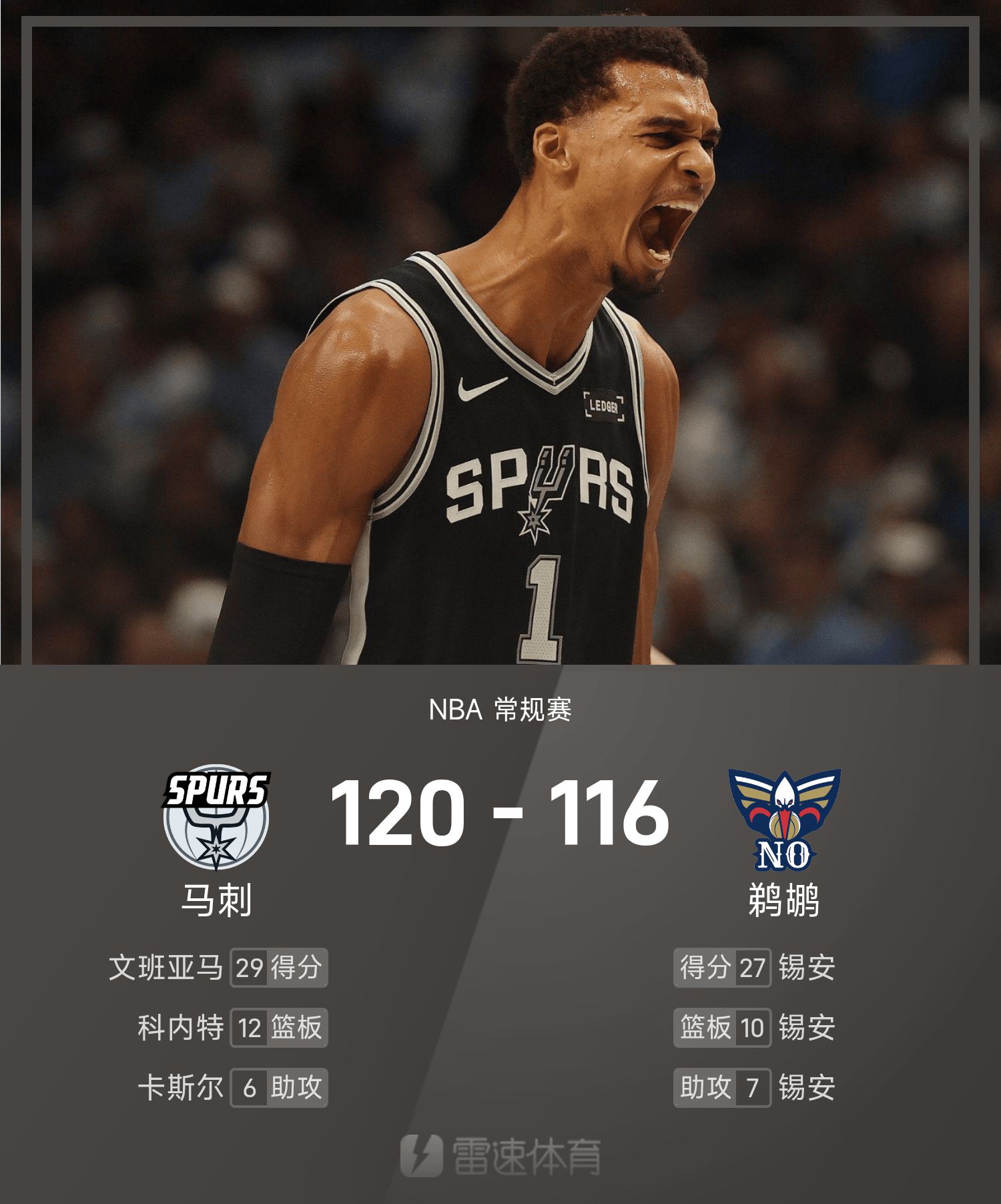 6686 กีฬา ข่าว 25 ตุลาคม ในฤดูกาลปกติของ NBA 25/26 ทีม Pelicans เผชิญหน้ากับสเปอร์ส จบเกม เพลิแกนส์ แพ้ สเปอร์ส 116-120 บุนยามะทำคะแนนสูงสุดในเกม 29 แต้ม 11 รีบาวด์ 2 แอสซิสต์ นำสเปอร์สคว้าชัย