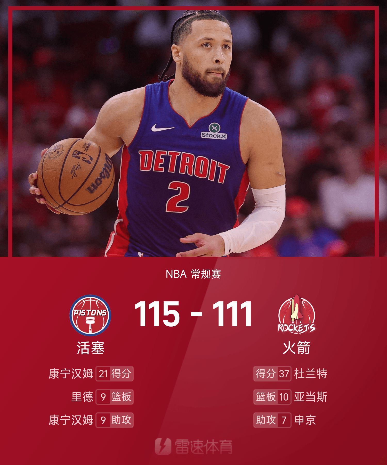 รายงานเกม NBA คันนิ่งแฮม 21 แต้ม 7 รีบาวด์ 9 แอสซิสต์ พิสตันส์ 115-111 ร็อคเก็ตส์