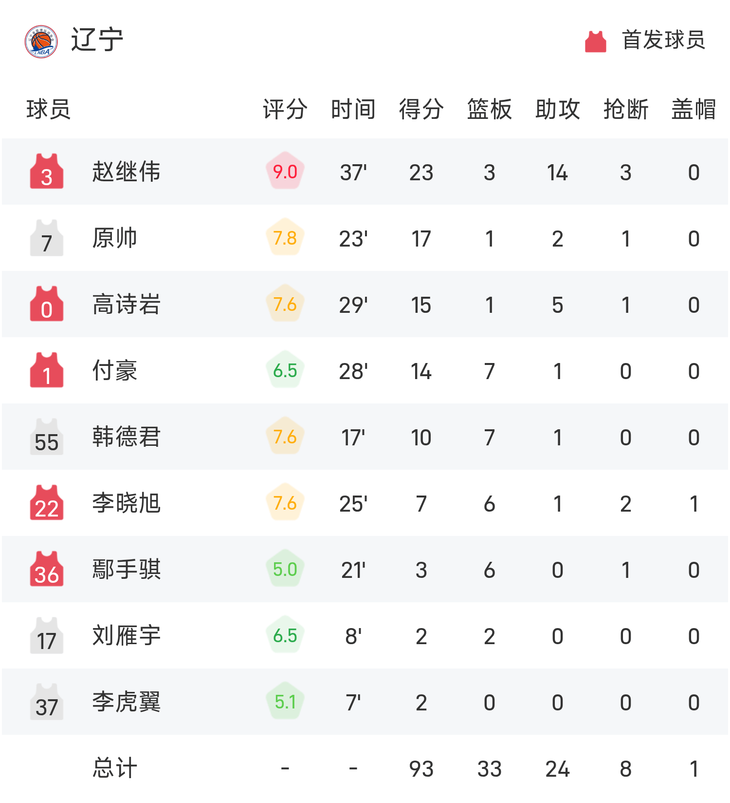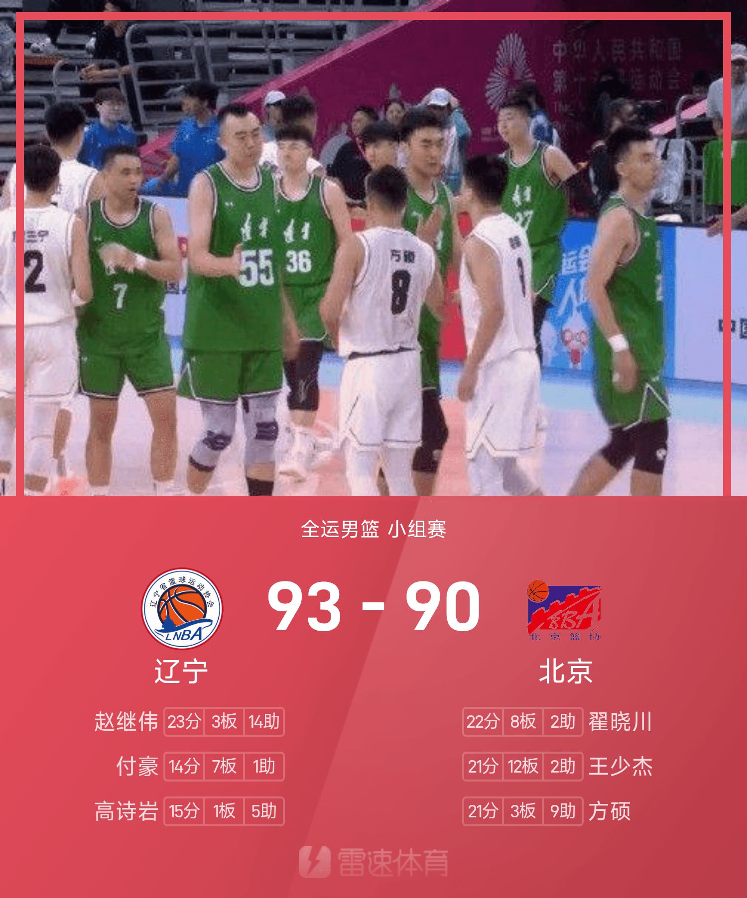 รายงานเกมบาสเกตบอลชายกีฬาแห่งชาติ จ้าว จีเว่ย 23 แต้ม 14 แอสซิสต์ เหลียวหนิงเอาชนะปักกิ่ง 93-90 อย่างหวุดหวิด