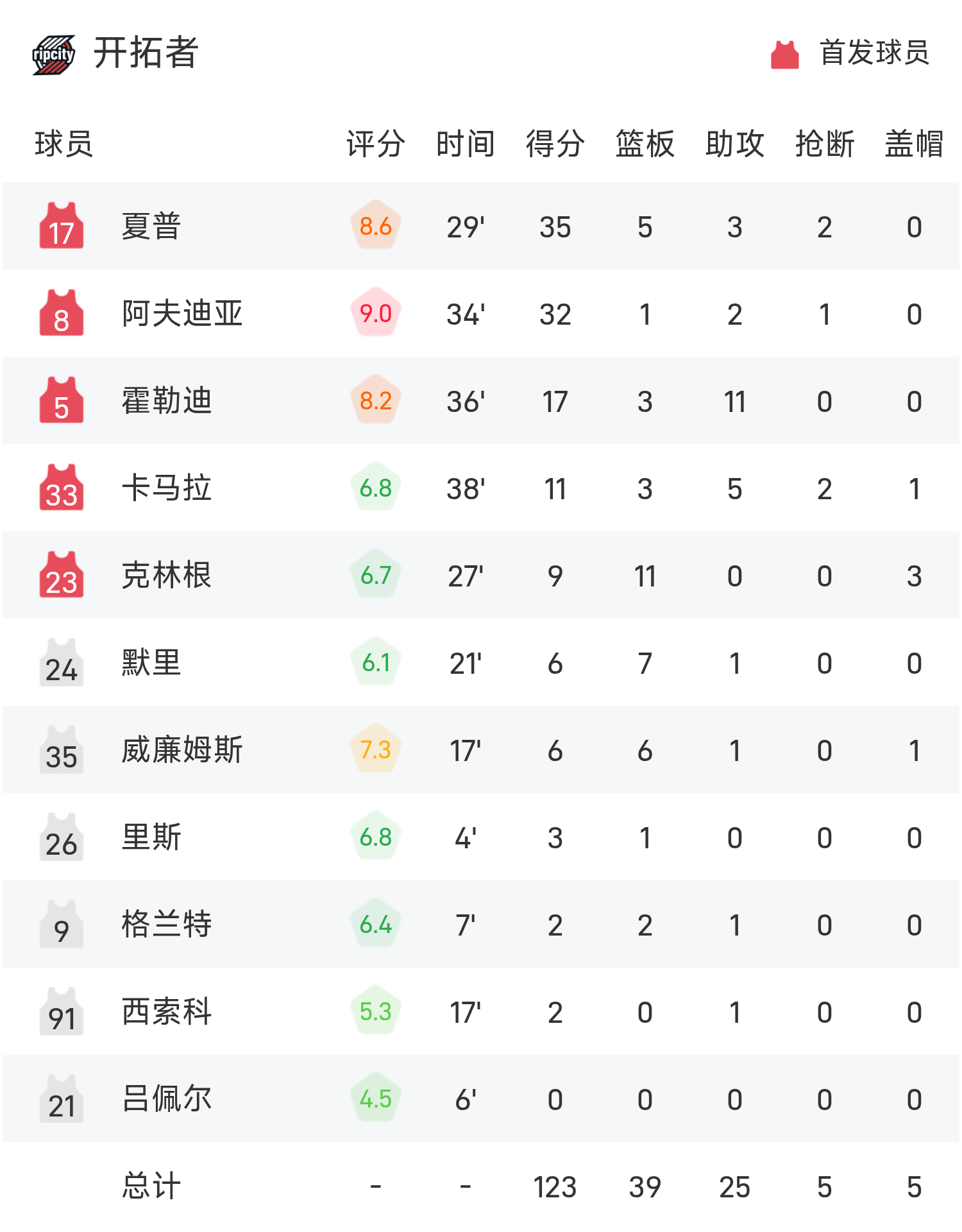 6686 กีฬา ข่าว 13 พฤศจิกายน ในฤดูกาลปกติ 25/26 ของ NBA ทีม Pelicans เผชิญหน้ากับ Trail Blazers จบเกม เพลิแกนส์ แพ้ เทรลเบลเซอร์ส 117-125 ชาร์ปทำคะแนนสูงสุดในเกม 35 แต้ม 5 รีบาวน์และ 3 แอสซิสต์ นำทีมเทรลเบลเซอร์คว้าชัยชนะ