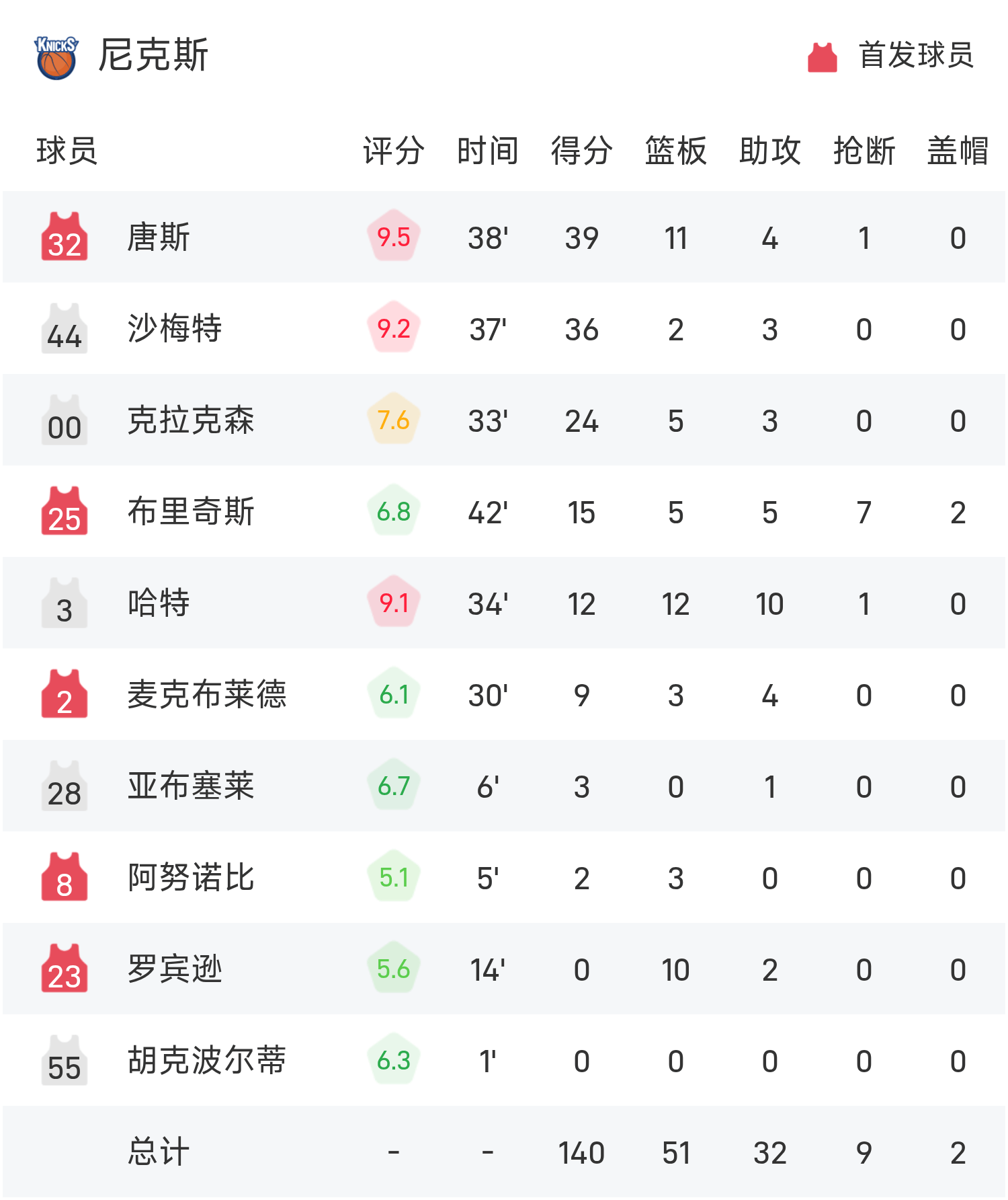 6686 กีฬา ข่าว 15 พฤศจิกายน ในการแข่งขันรอบแบ่งกลุ่ม NBA Cup ประจำฤดูกาล 25/26 ของ NBA ทีม Knicks เผชิญหน้ากับความร้อนแรง จบเกม นิกส์ เอาชนะ ฮีต 140-132 ทาวน์สทำคะแนนสูงสุดในเกม 39 แต้ม 11 รีบาวน์และ 4 แอสซิสต์ นำทีมนิกส์คว้าชัยชนะ