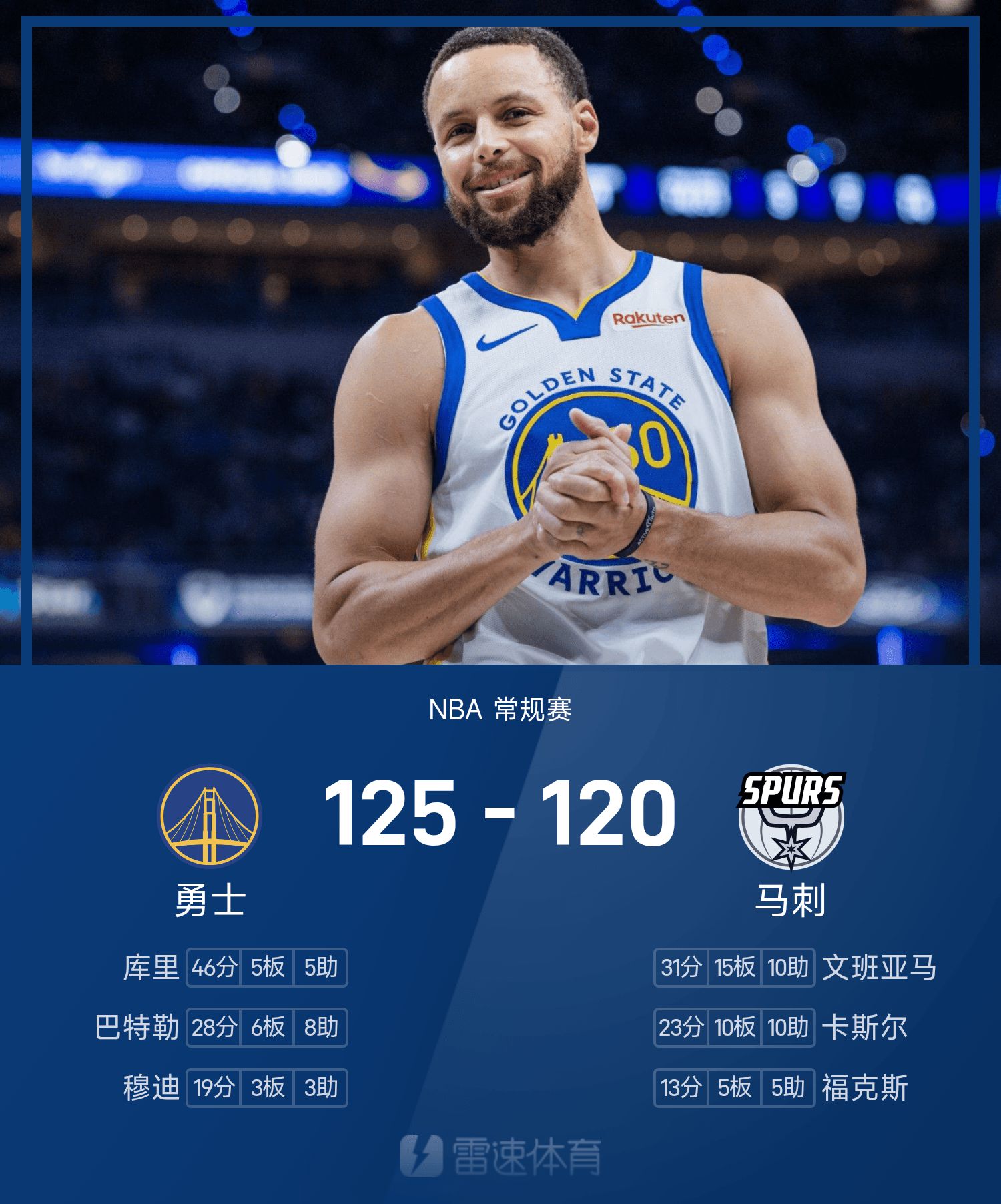 รายงานศึก NBA เคอร์รี่ 46 แต้ม เหวินบัน ทริปเปิล-ดับเบิ้ล วอร์ริเออร์ส 125-120 สเปอร์ส