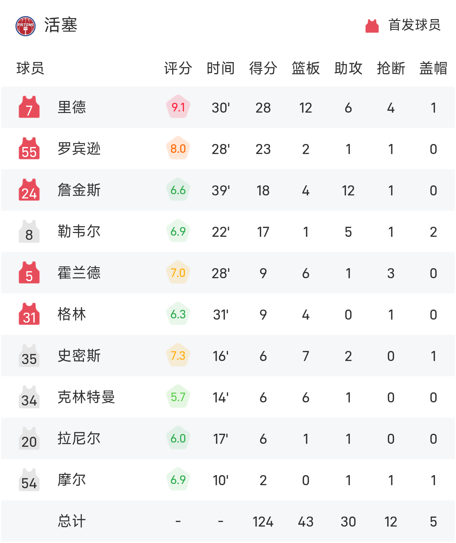 รีดทำคะแนนสูงสุดในเกม 28 แต้ม 12 รีบาวน์และ 6 แอสซิสต์ นำทีมพิสตันส์คว้าชัยชนะ