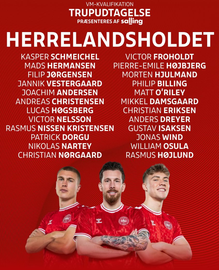 เดนมาร์กประกาศรายชื่อนักเตะใหม่ ฮอยเลนนำกองหน้า เอริคเซ่นถูกเลือก