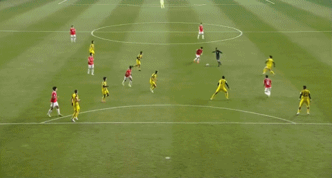 23' จิน ตงจินยิงลูกนอกเข้าโค้งจากหลังเท้าด้านนอก และบอลพลาดทางด้านซ้ายของประตู