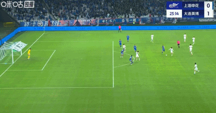 14' เกา เทียนยี่ ส่งบอลเข้าไปในเขตโทษ อู๋ ซีส่ายหัวต่อหน้าประตู และ ล้มเหลวในการเข้าเป้า