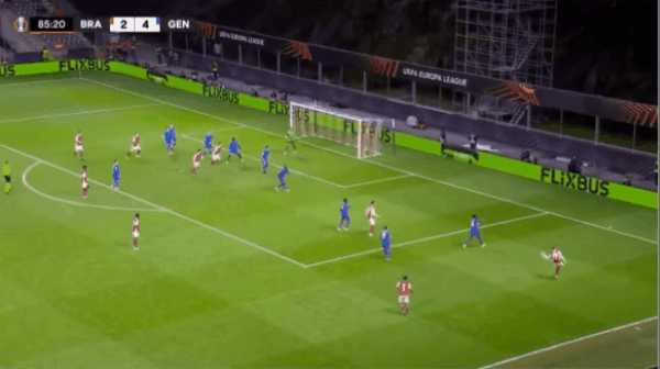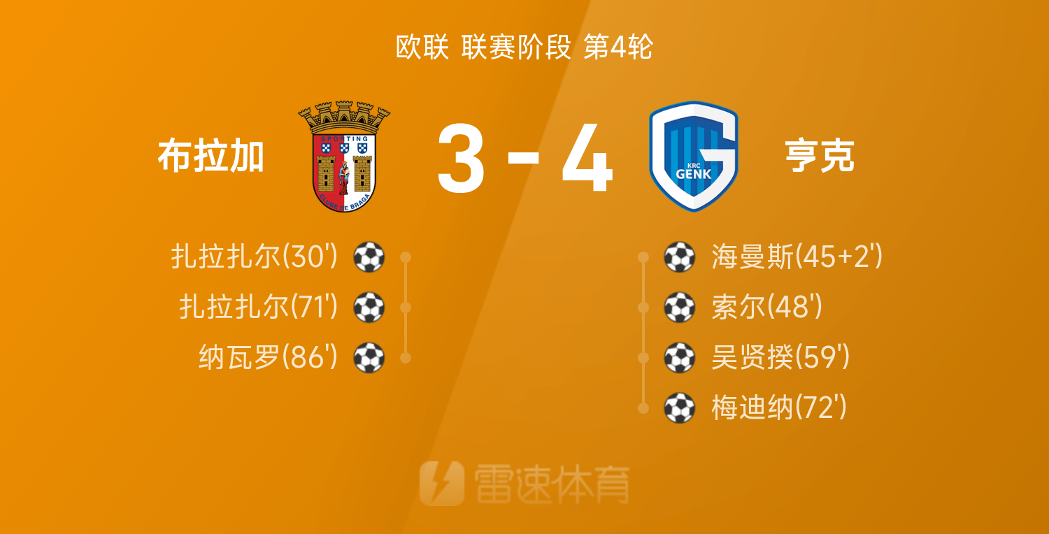 รายงานผลการแข่งขันยูโรป้าลีก เฮย์แมนส์ ยิง 1 ครั้ง จ่ายบอล 1 ครั้ง ซาลาซาร์ ยิง 2 ประตู เกงค์ 4-3 บราก้า