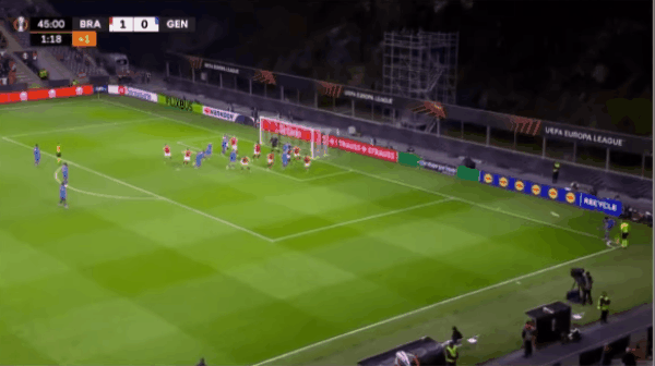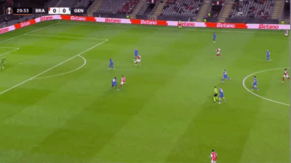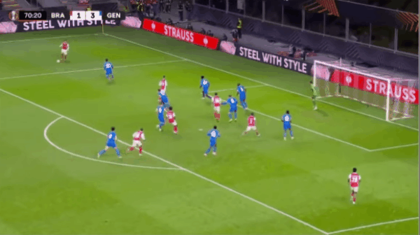 รายชื่อผู้เล่นตัวจริงของบราก้า: 1-โฮนิเซ็ก, 2-โกเมซ, 5-เลโล่ (56'20-ด็อกเกิลส์), 26-เอ็มบี, 14-ลาเกอร์เบียร์เก้, 8-มูตินโญ่ (56'27-กริลลิก), 21-ฮอร์ตา (77'18-วิคเตอร์), 29-โกลบี้, 1 0-ซาลาซาร์ (84'50-เอ็นริเก้), 9-วาซซานี่ (56'39-นาวาร์โร), 77-มาร์ติเนซ