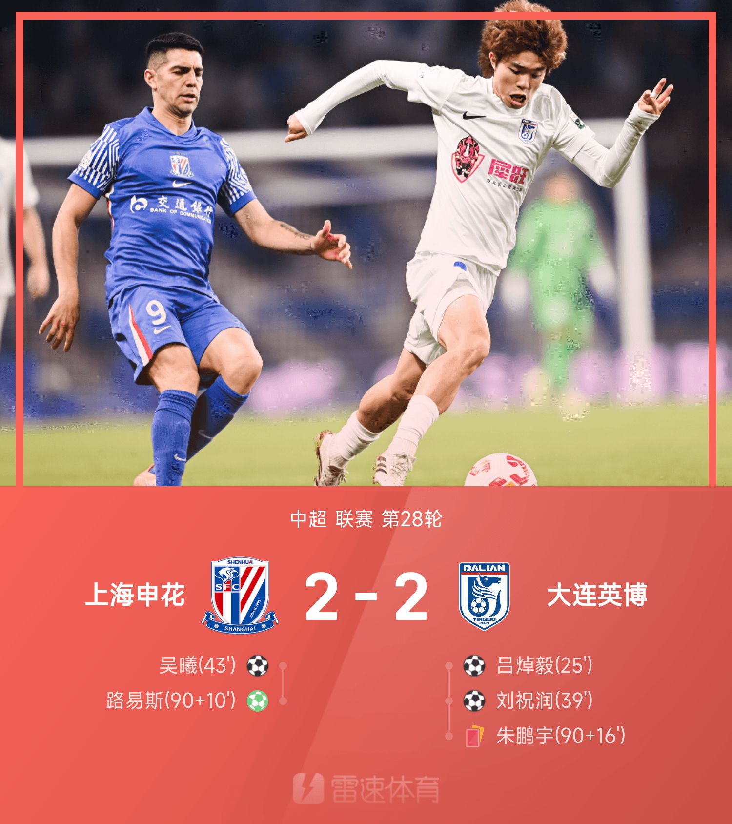6686 Sports 26 ตุลาคม ในรอบที่ 28 ของไชนีสซูเปอร์ลีกครั้งที่ 25 เซี่ยงไฮ้ เสิ่นหัว เสมอ 2-2 กับ ต้าเหลียน หยิงโป ในครึ่งแรก หลู่โจวอี้สร้างกระแสโลกและให้ต้าเหลียนหยิงโปเป็นผู้นำ Liu Zhurun ขยายความเป็นผู้นำและ Wu Xi ได้ประตูกลับมาให้ Shenhua ครึ่งหลังกรรมการวิดิโอเข้ามาแทรกถึง 4 ครั้ง อู๋ ซี และหวัง ไห่เจี้ยน ยิงชนคาน ในช่วงทดเวลาบาดเจ็บ ผู้ตัดสินวิดีโอเข้ามาขวาง และอู๋ ซีก็ได้รับชัยชนะ หลุยส์ได้จุดโทษให้เสมอกัน ในที่สุด Shanghai Shenhua ก็เสมอ 2-2 กับ Dalian Yingbo ซึ่งอยู่ห่างจากจุดสูงสุด 2 แต้ม