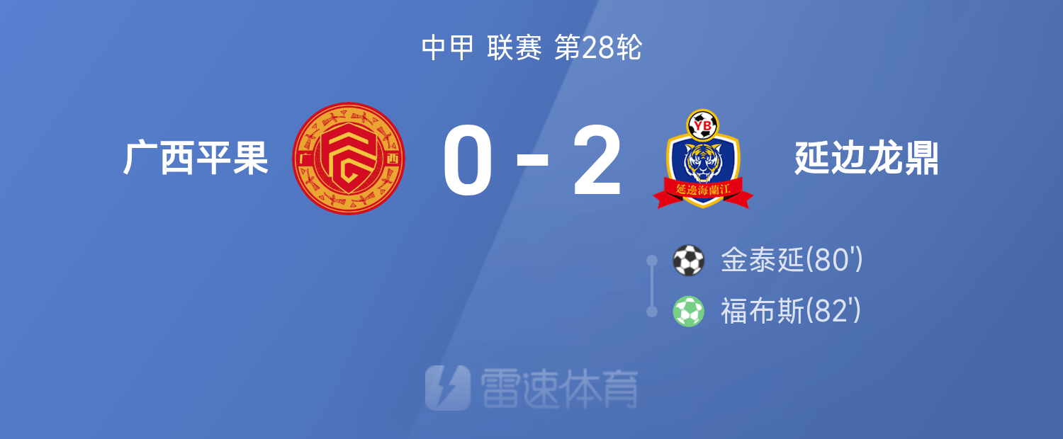 6686 กีฬา 26 ตุลาคม ในรอบที่ 28 ของลีคจีนครั้งที่ 25 Yanbian Longding เอาชนะ Guangxi Pingguo 2-0 ตลอดทั้งเกม Forbes และ Kim Tae-Yeon ทำประตูได้