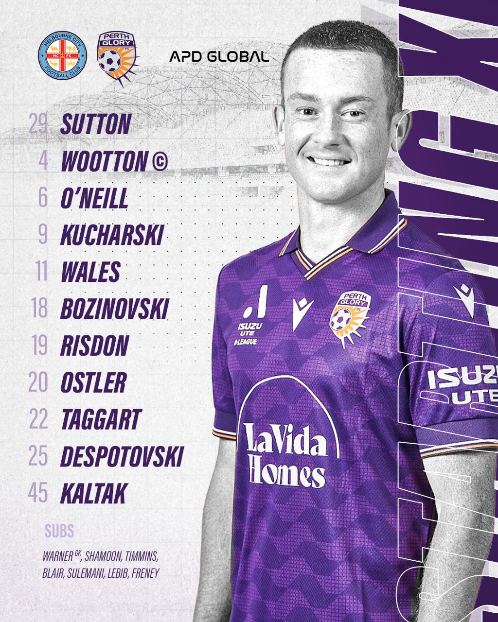 เมลเบิร์น ซิตี้ พบ เพิร์ท กลอรี ผู้เล่นตัวจริง: เลคกี้ พีเค แทกการ์ต, คูชาร์สกี้, บีช อยู่ในรายชื่อ