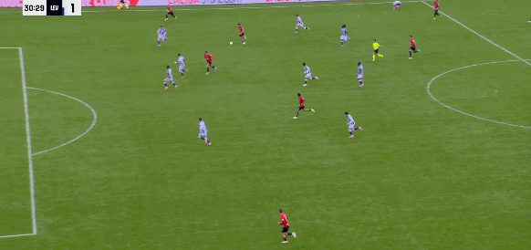 31' ดาเดลล์ตีปีกเขาจากด้านหลังในโซนสามวินาที จากนั้นวอลเลย์อันทรงพลังของเขาก็ตีลูกให้สูง
