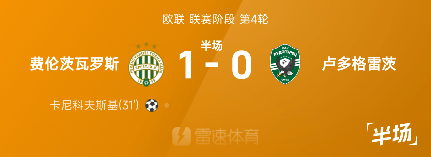 6686 Sports 07 พฤศจิกายน ในรอบที่สี่ของยูโรปาลีก 25/26 Ferencvaros เผชิญหน้ากับ Ludogorets หลังพักครึ่งสกอร์ระหว่างทั้งสองฝ่ายคือ เฟเรนซ์วารอส 1-0 ลูโดโกเร็ตส์ โดยคานิคอฟสกี้เป็นผู้ทำประตู