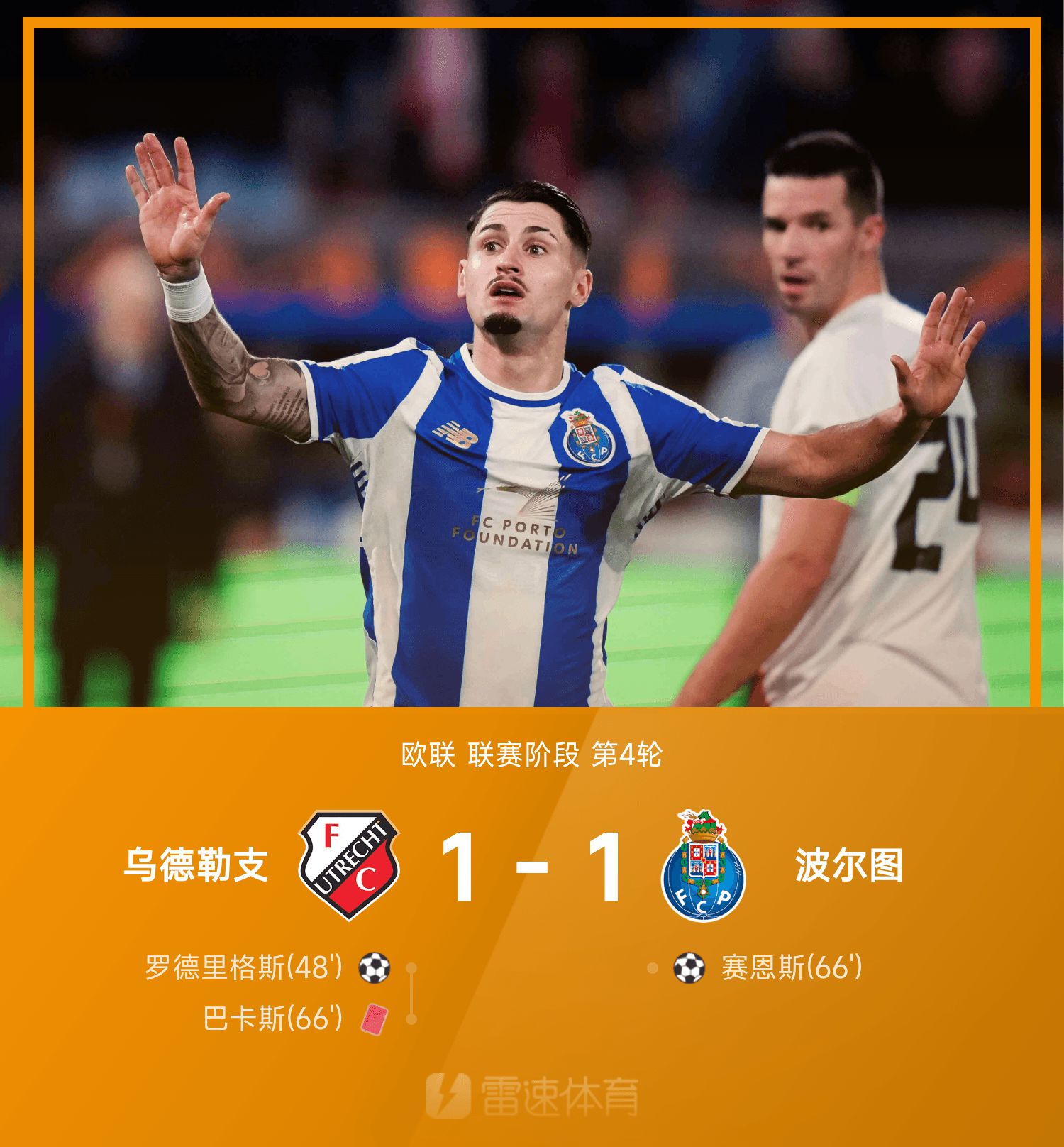 6686 ข่าวกีฬาเมื่อวันที่ 7 พฤศจิกายน ในรอบที่สี่ของยูโรปาลีก 25/26 อูเทรชต์เล่นกับปอร์โต้ ครึ่งแรกทั้งสองฝ่ายทำอะไรไม่ได้เลย ครึ่งหลังในนาทีที่ 48 โรดริเกซมีส่วนช่วยทลายทางตัน Sainz ยิงประตูสุทธิที่ว่างเปล่าเพื่อให้คะแนนเท่ากัน ในช่วงเวลานี้ บากัสผู้รักษาประตูอูเทรชต์ทะเลาะกับผู้เล่นปอร์โตและถูกส่งตัวออกไป และอูเทรชต์ตอบโต้ด้วยชายสิบคน ท้ายที่สุด อูเทรชต์ที่มีผู้เล่น 10 คนเสมอกับปอร์โต้ 1-1 ทั้งสองฝ่ายจับมือกันจบเกม