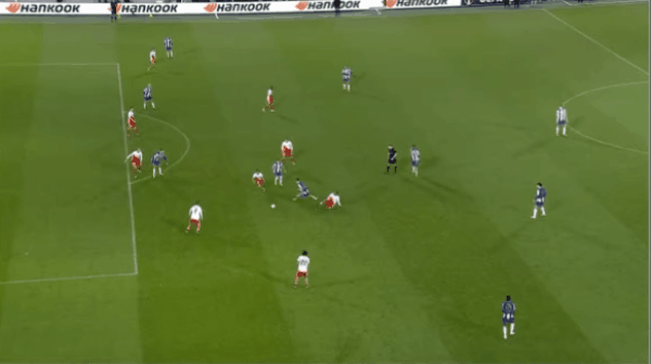 รายชื่อผู้เล่นตัวจริงของปอร์โต้: 14-รามอส, 24-อันโดลินญา, 4-คิเวียร์, 74-โมรา, 20-คอสต้า, 22-วาเรลา, 8-โฟรโฮลท์, 25-เปเรซ, 86-โมรา, 9-อกาโฮวา, 47-อลาร์คอน, 7-ซานโตส