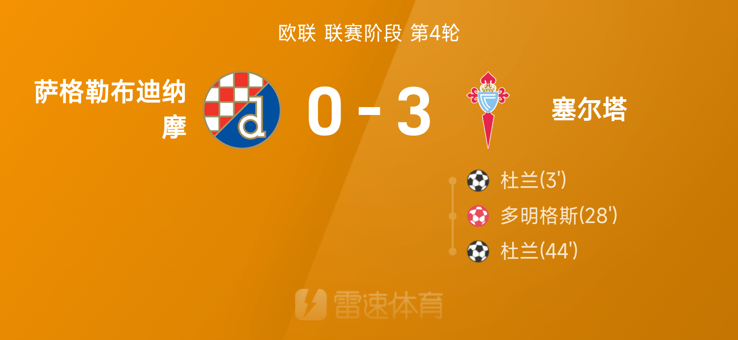 6686 กีฬา 7 พฤศจิกายน ในรอบที่สี่ของยูโรป้าลีก 25/26 เซลตาเอาชนะดินาโมซาเกร็บ 3-0 ตลอดทั้งเกม ดูรันยิงได้ 2 ประตู และโดมิงเกซทำเข้าประตูตัวเอง
