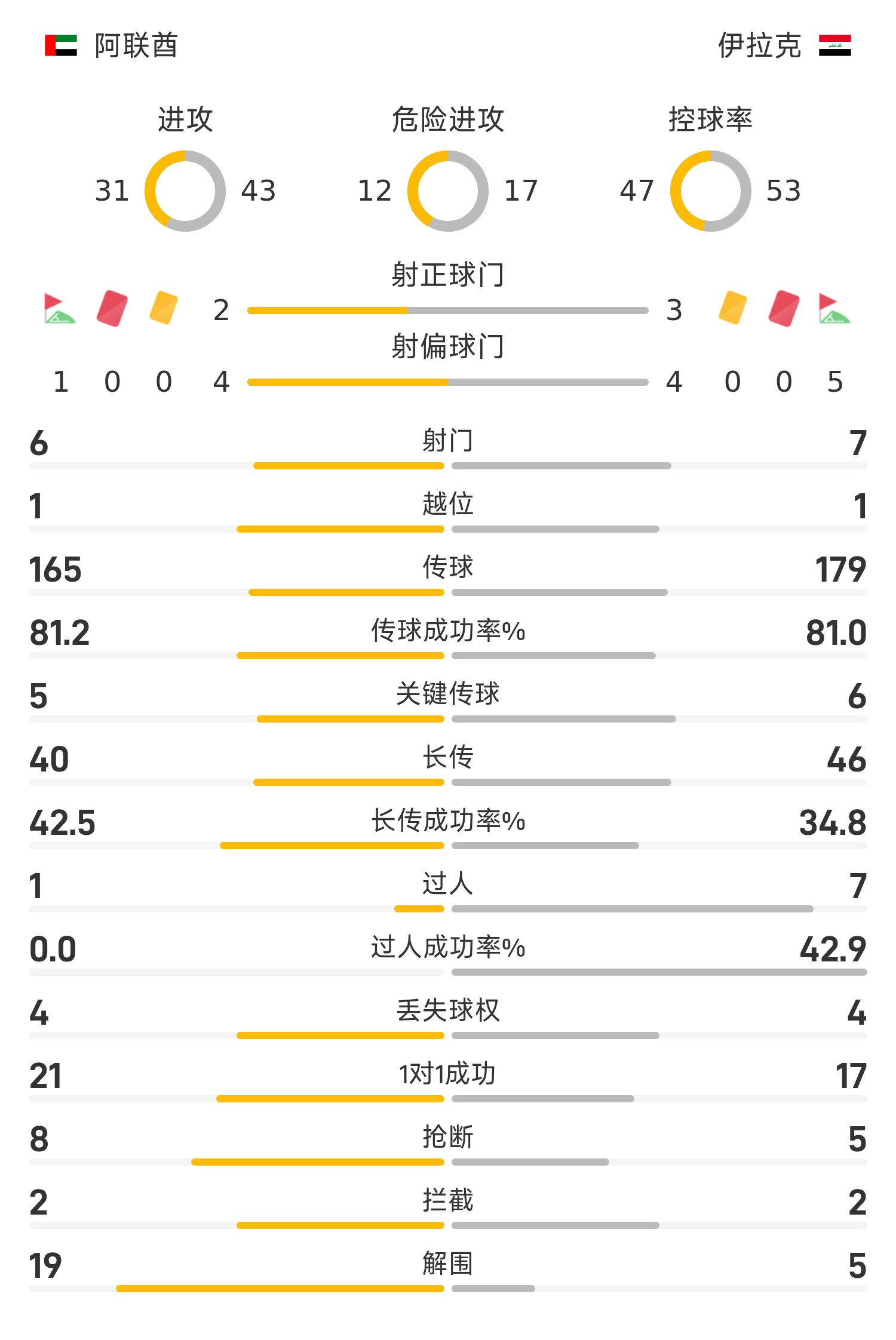 รายชื่อสำรองของสหรัฐอาหรับเอมิเรตส์: 1-ฮูซานี, 22-แมคเคย์บอลลี, 19-อับราฮิม, 4-ออตเทิร์น, 13-ราบี, 12-อัลวาเรซ, 18-อัลเมลซี, 10-ลูคัส, 11-คาเนโด, 7 -ซาเลห์, 21-บรูโน, 8-อาคอนโน