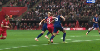 35' มัลเลนและเพื่อนร่วมทีมเล่นกันชนกำแพงและส่งบอลผ่านเขตโทษ กองหลังชาวโปแลนด์สกัดบอลได้