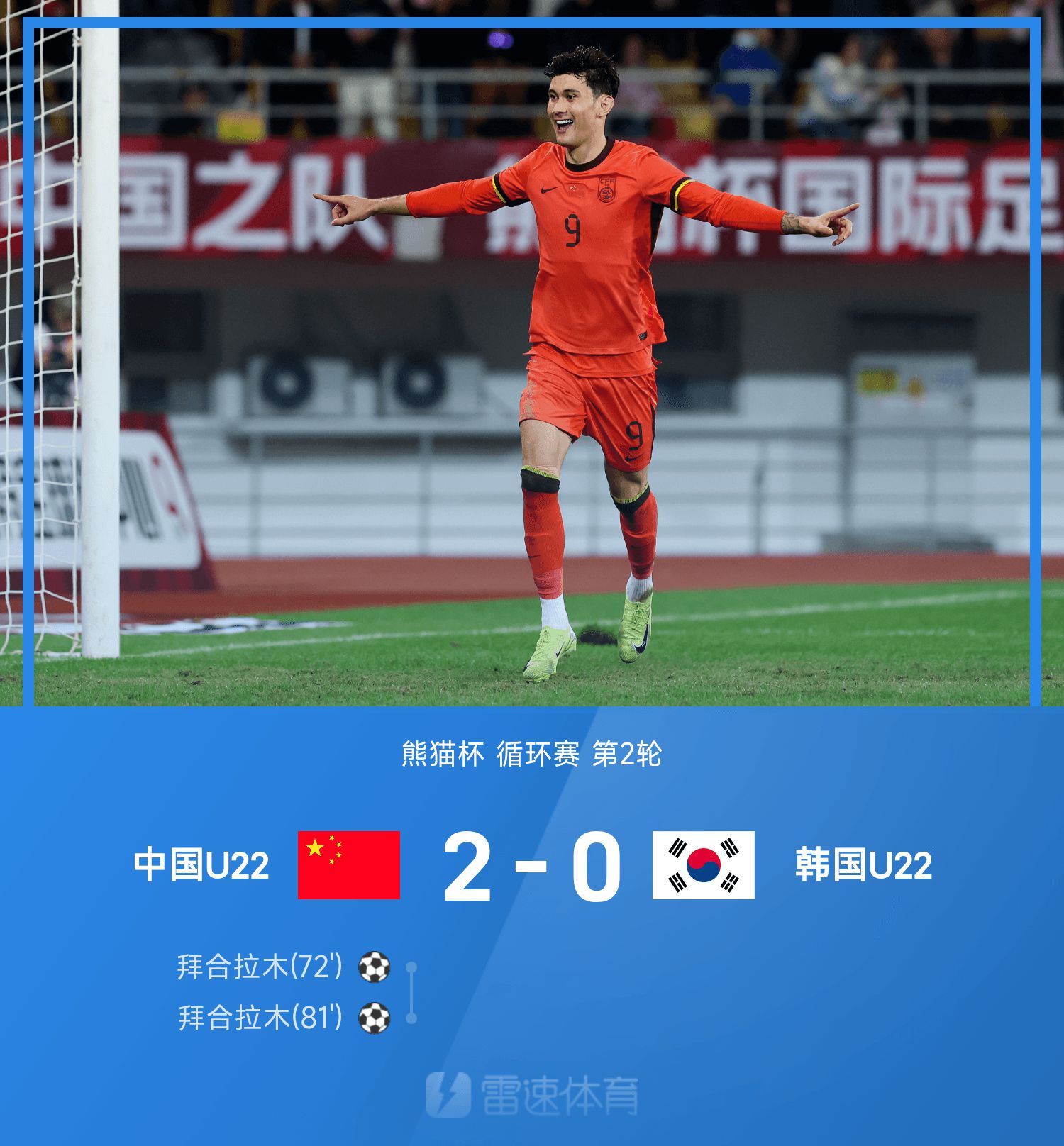 6686 ข่าวกีฬาวันที่ 15 พฤศจิกายน ในรอบที่สองของฤดูกาลที่ 25 การแข่งขันรอบ Panda Cup จีน U22 พบกับเกาหลีใต้ U22 ในครึ่งแรก ซูปินทำพลาดและเกือบจะให้ของขวัญ และจิน ยงฮักก็พลาดโอกาสนี้ไป ในครึ่งหลัง ประตูของ Li Zhenquan ถูกเรียกล้ำหน้า ไป๋เหอ ลามู สกัดจังหวะแรกด้วยการยิงต่ำ จากนั้นจึงยิง 2 ประตูด้วยส้นเท้าของเขา สุดท้าย จีน U22 เอาชนะ เกาหลีใต้ U22 2-0