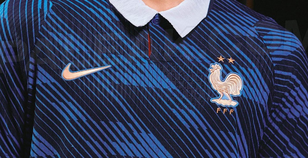 ชุดทีมใช้รูปแบบเต็มตัวสีน้ำเงินเข้ม และผสมผสานองค์ประกอบของสหพันธ์ฟุตบอลฝรั่งเศส (FFF) คอเสื้อเป็นปกโปโลสมัยใหม่ โดยมีสีขาวที่ด้านหน้าและสีน้ำเงินเข้มที่ด้านหลัง โดยมีรายละเอียดสีแดงซ่อนอยู่ที่ปกเสื้อ