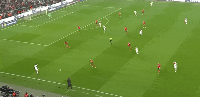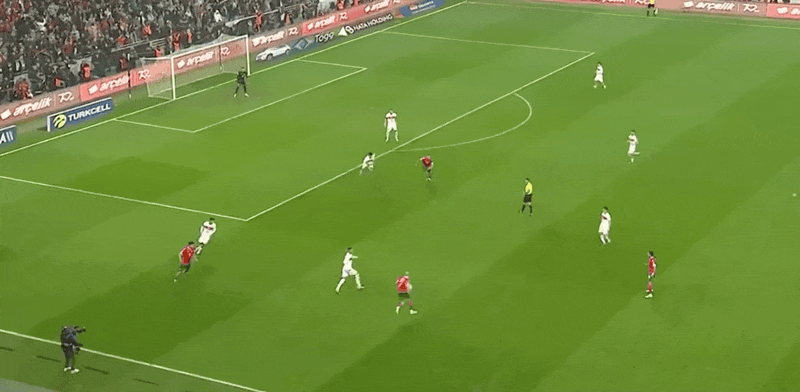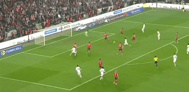 47' อัคตูโคกลูกระโดดสูงในโซนสามวินาทีแล้วโหม่งบอลเข้าหาประตู แต่โดนป้ายโฆษณา