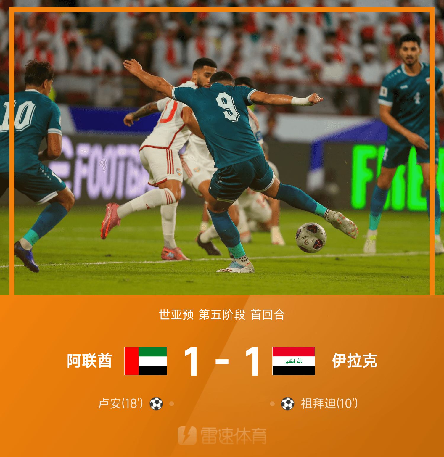 6686 ข่าวกีฬาวันที่ 14 พฤศจิกายน ในรอบแรกของสเตจที่ 5 ของรอบคัดเลือกเอเชียโลกปี 2026 สหรัฐอาหรับเอมิเรตส์เผชิญหน้ากับอิรัก นาทีที่ 10 ซูไบดีทำประตูด้วยการกวาดหน้าประตู นาทีที่ 18 รอมฎอนช่วยหลวนทำประตูช่วยให้ยูเออีตีเสมอสกอร์ 1-1 ต่อจากนั้นทั้งสองทีมก็แลกเปลี่ยนการรุกและการป้องกัน อิสซา ผู้รักษาประตูยูเออีเซฟได้ดีมากหลายครั้ง และคะแนนในสนามไม่เคยเปลี่ยนแปลง ในช่วงทดเวลาบาดเจ็บนาทีที่ 6 ฆิเมเนซได้ฟรีคิกและช่วยลูคัสทำประตู แต่ถือว่าไม่ถูกต้องเนื่องจากล้ำหน้า สุดท้าย ยูเออี เสมอ อิรัก 1-1