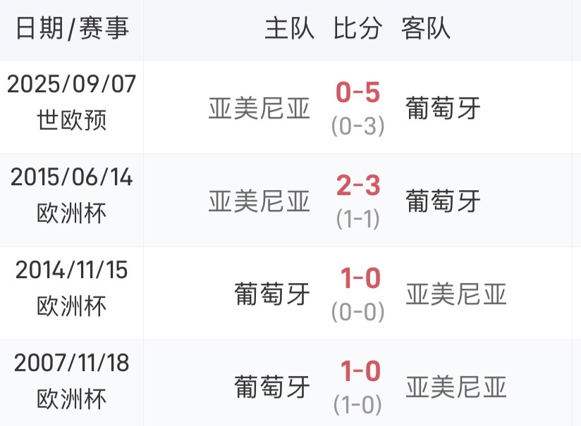 ได้เปรียบ! โปรตุเกสและอาร์เมเนียชนะการพบกันสี่ครั้งล่าสุด