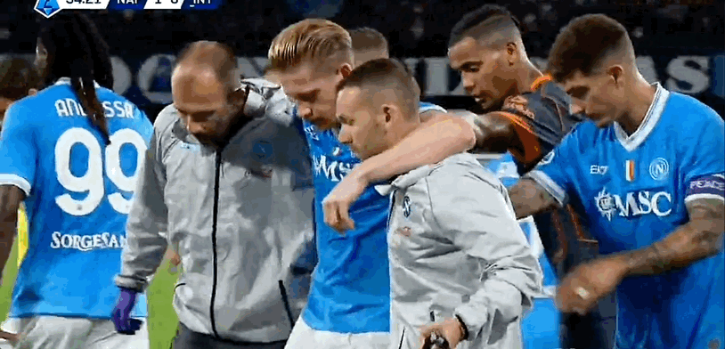 ตามรายงานของ Gazzetta dello Sport เดอ บรอยน์ได้รับบาดเจ็บสาหัสหลังจากเตะจุดโทษ ในเวลานั้น ผู้ตัดสิน Mariani ตัดสินว่าผู้เล่นชาวอาร์เมเนีย Mkhitaryan ฝ่าฝืน Di Lorenzo และให้ Naples สิบสองหลา น่าแปลกที่ผู้ทำประตูสูงสุด 12 หลาของทีมคือเนเรส ปีกชาวบราซิล เขาหยิบลูกบอลขึ้นมาและกำลังเตรียมที่จะรับจุดโทษ อย่างไรก็ตาม โค้ชคอนเต้เปลี่ยนใจกะทันหันส่งโปลิตาโน่เป็น “ผู้ส่งสาร” แจ้งให้ทั้งสองปรับคำสั่ง สุดท้าย เดอ บรอยน์ ยืนอยู่หน้าสิบสองหลาและยิงจุดโทษอย่างใจเย็น ช่วยให้เนเปิลส์ขึ้นนำ 1-0
