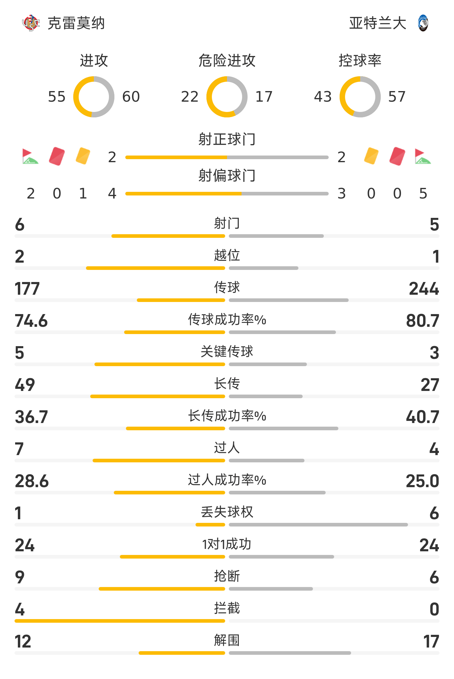 45'เด เคตราเรโหม่ง บอลเข้าประตูแล้วผู้รักษาประตูเครโมน่าก็ยึดบอล