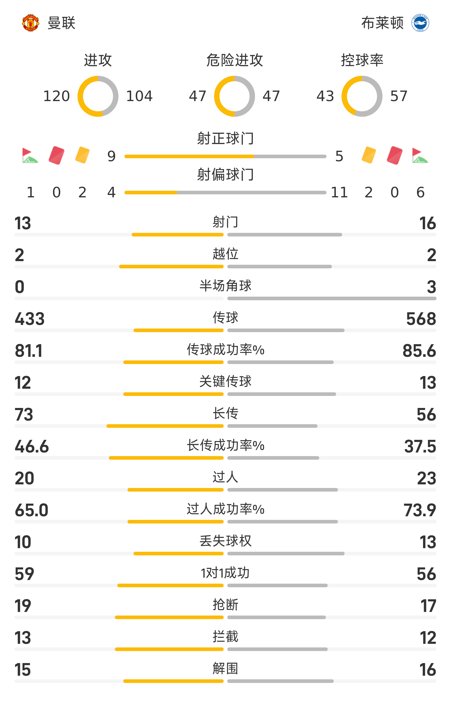 44' เอ็มเบโมส่งบอลพี่เลี้ยงเด็ก เชชโก้พลาดด้วยการวอลเลย์ด้วยเท้าซ้าย แมนเชสเตอร์ ยูไนเต็ด ยังคงเป็น 2-0 ไบรท์ตัน